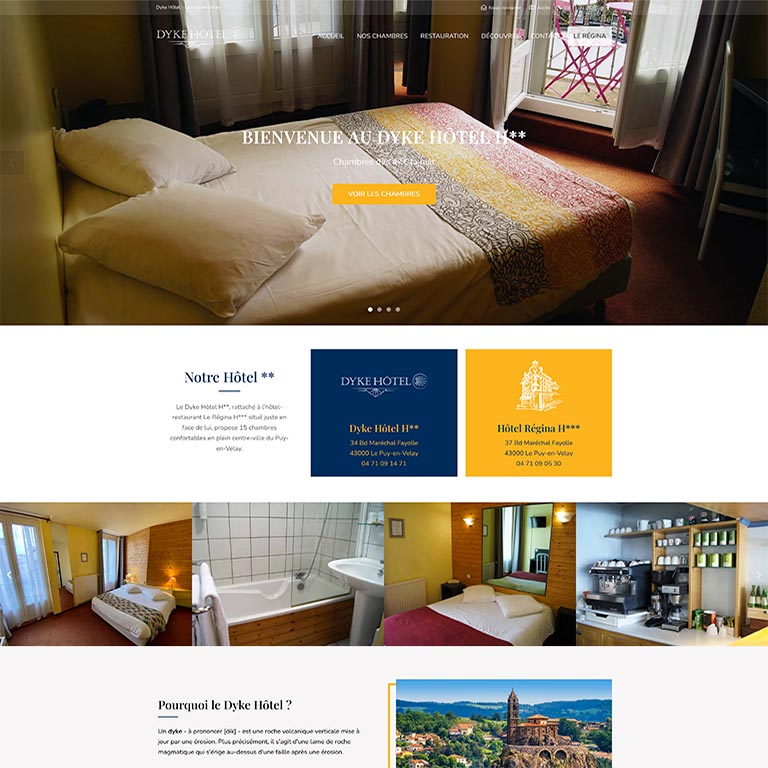 Création du site web du Dyke Hôtel du Puy-en-Velay avec outil de réservation en ligne et plateforme de paiement par CB avec la solution Stripe.