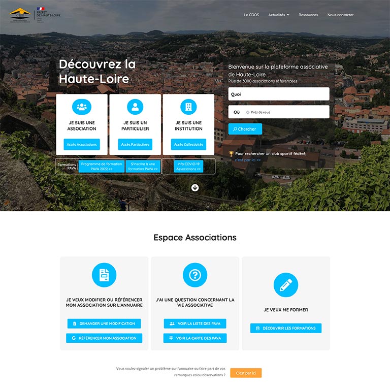 Création d'un annuaire associatif de la Haute-Loire intégrant différents outils associatifs tels que plateforme du bénévolat, petites annonceset recencement des subventions.