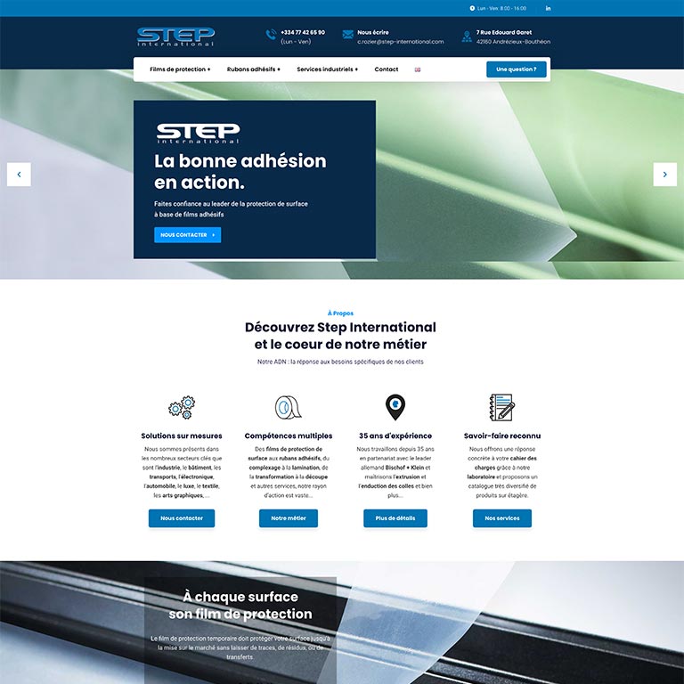 Réalisation du site vitrine d'une entreprise stéphanoise leader dans la production de films protection pour toutes surfaces et de Duck Tape.