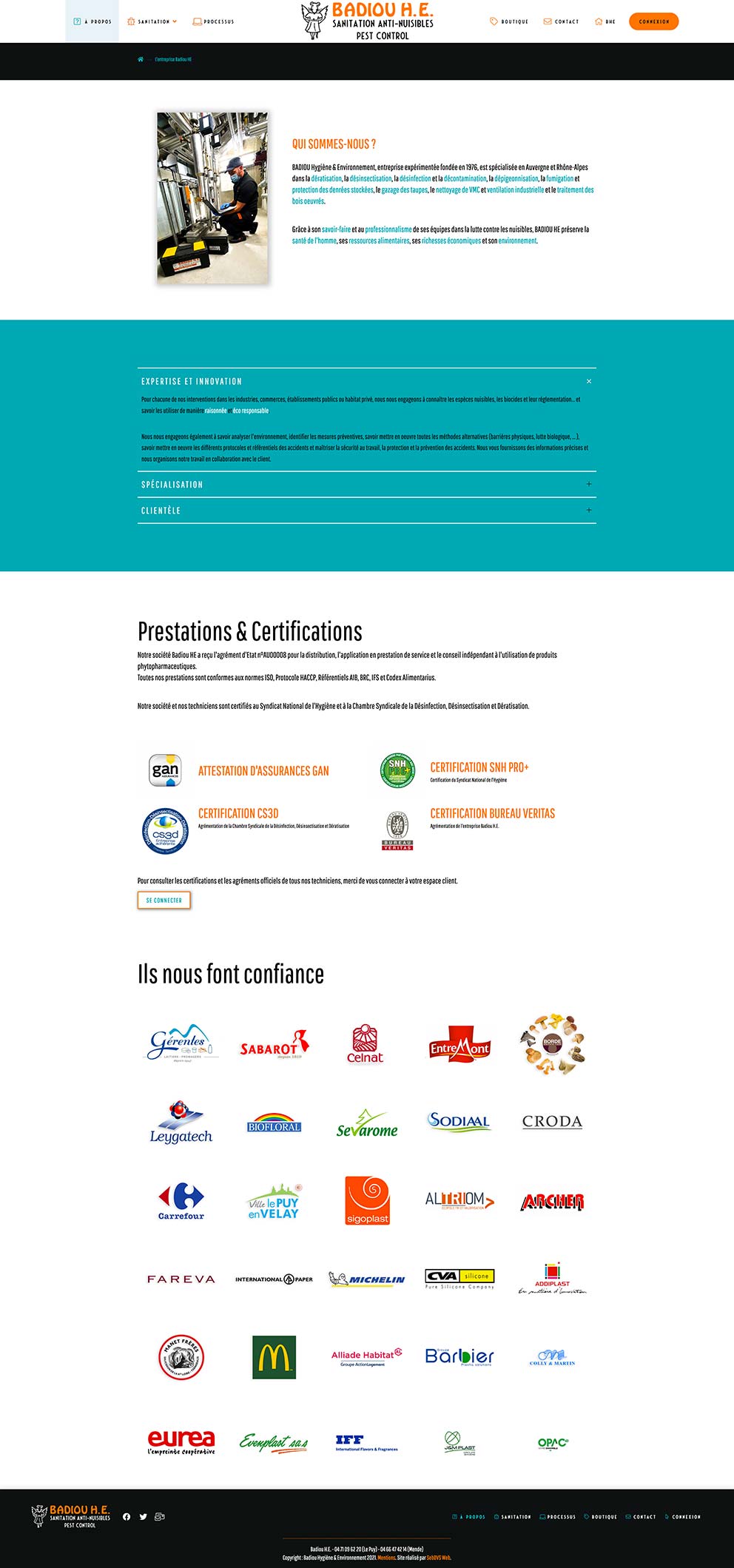 ☑ Refonte d'un site existant pour Badiou Hygiène Environnement, leader en Haute-Loire de la lutte anti-nuisibles.