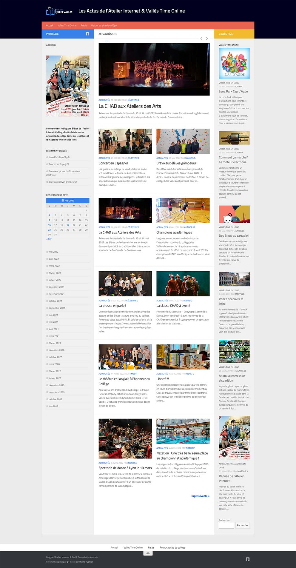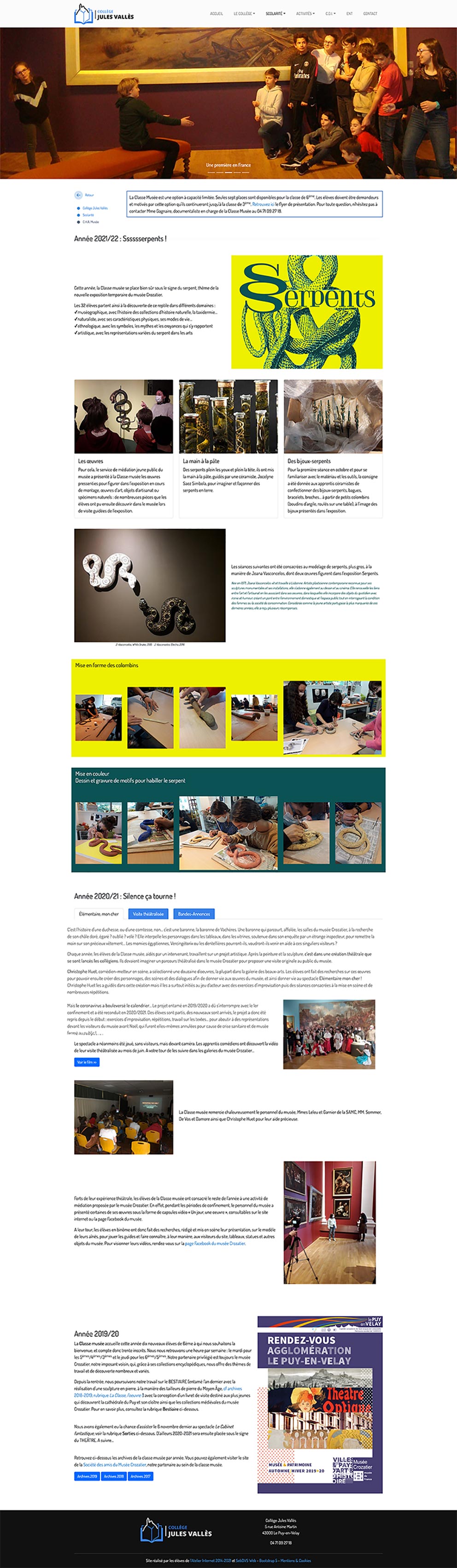 ☑ Animation d'un Atelier Internet hebdomadaire avec les élèves de la 6ème à la 3ème avec inititation à l'internet et à ses usages, apprentissage des bases du code (HTML, CSS, Javascript et Wordpress), mises à jour du site du collège et de ses actualités. Prexemple, la page de la Classe Musée a été réalisée conjointement avec deux élèves de 5ème.