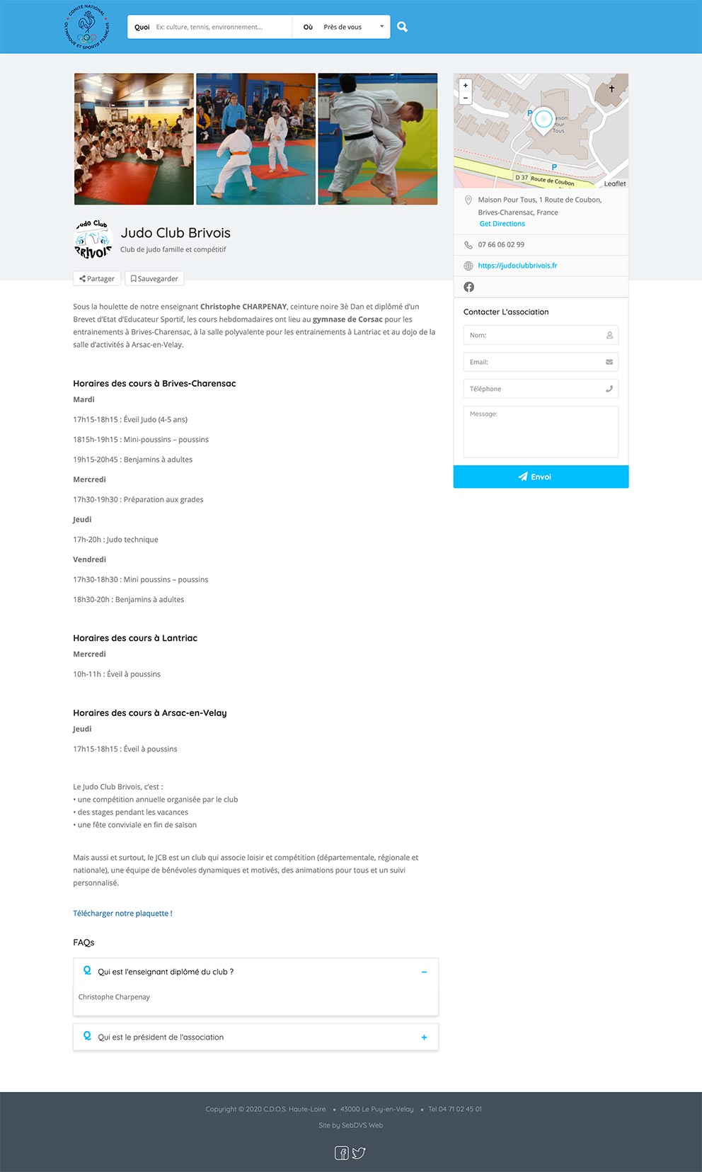 Fin 2019, le Comité Départemental Olympique et Sportif 43 décide de proposer une plateforme web permettant aux habitants de la Haute-Loire de retrouver une association ou un club sportif par thématique et par territoire. Par ce biais, il serait possible d’avoir accès à l’ensemble des informations concernant l'association (coordonnées, lieu de pratique, description, correspondant, site Internet, etc…). Il s'agirait de réaliser un portail associatif pour les bénévoles et professionnels. Les objectifs étaient de :