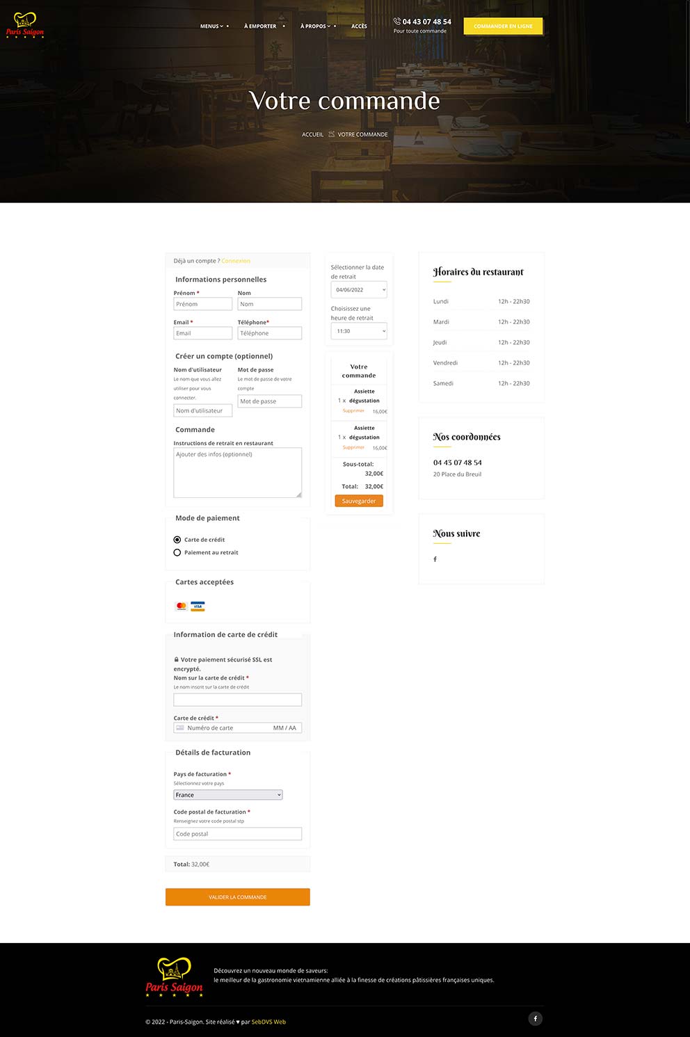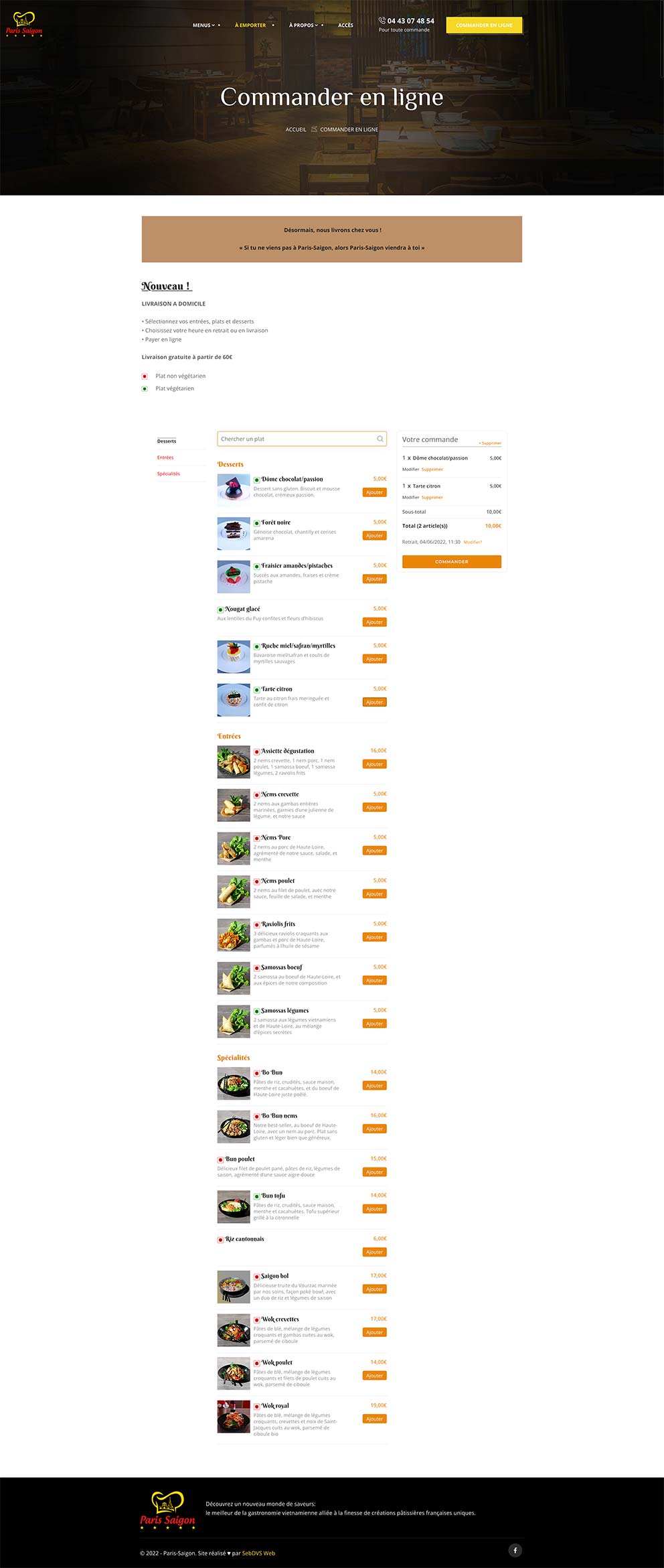 ☑Possibilité de commander (frais de livraison calculé sur la distance avec API Google) et de payer en ligne avec CB (solution Stripe)